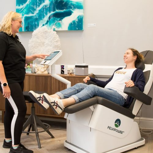 The newly developed Pelvi Power Chair is based on magnetic field stimulation and the bio-feedback of your body. Gentle pulses gradually increase, which signals the nerves to tell the muscles to contract. This causes the brain to recall ALL areas of the pelvic floor as the muscles automatically react to the stimulus. This not only trains and strengthens the muscles, but also makes the brain include them again in its daily movement routine.