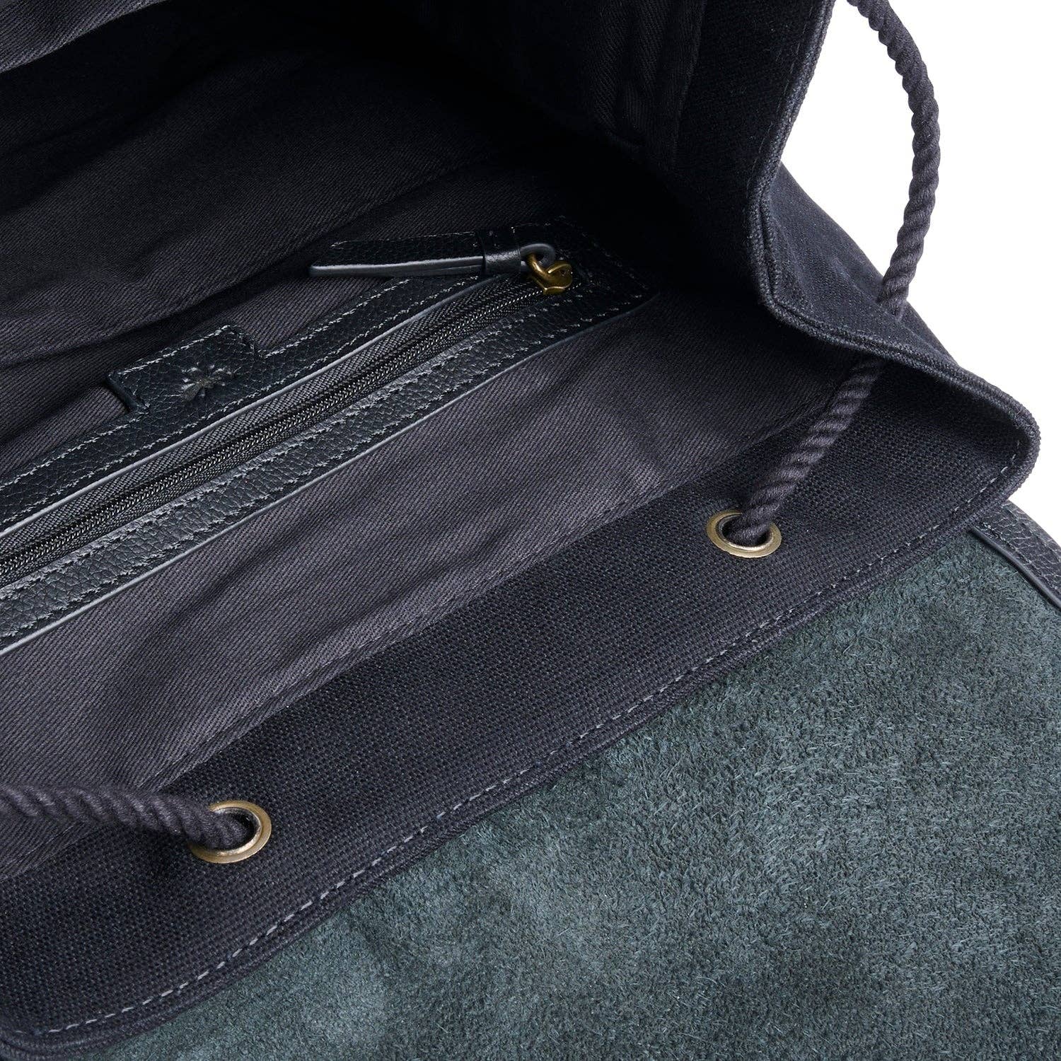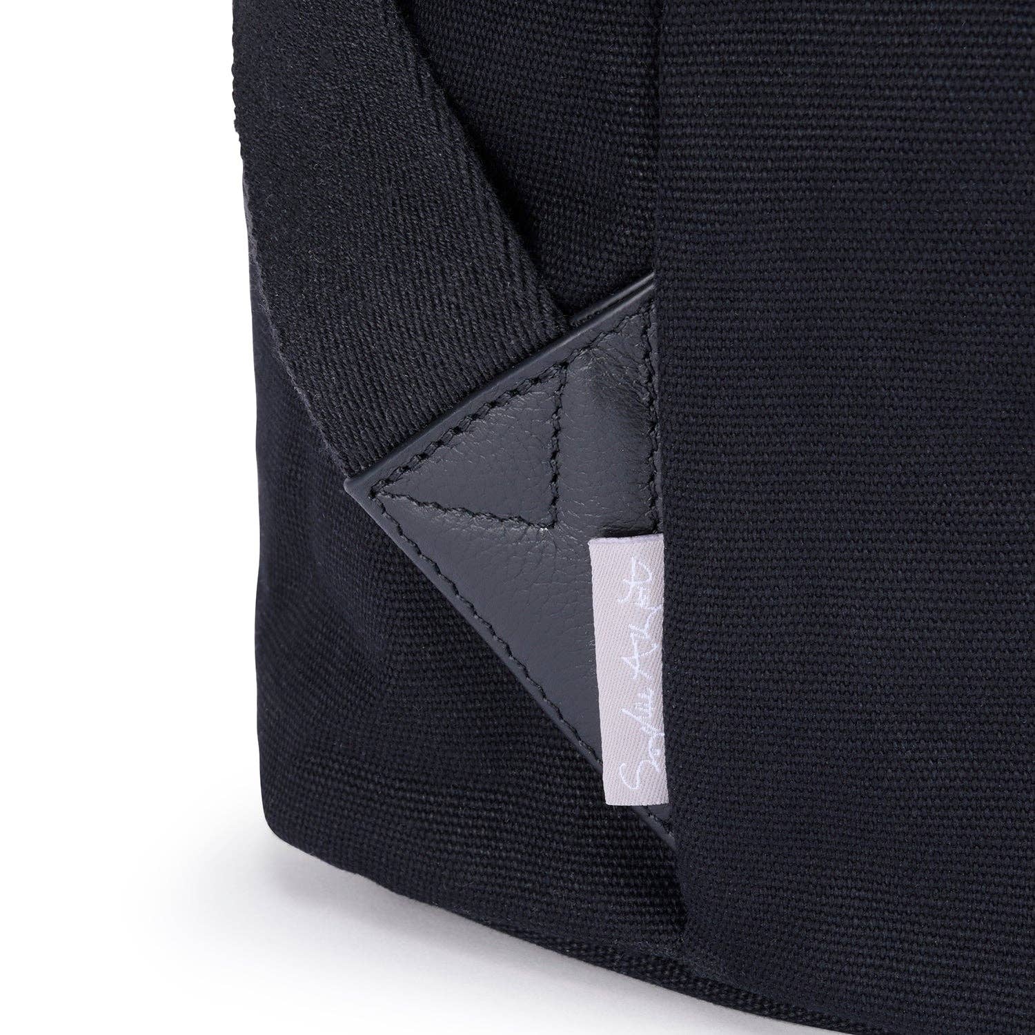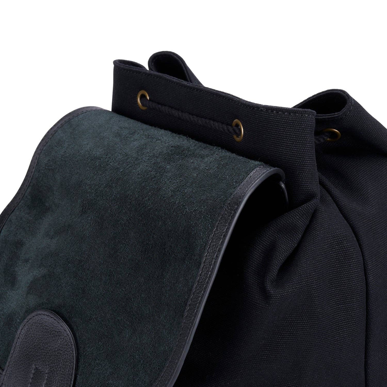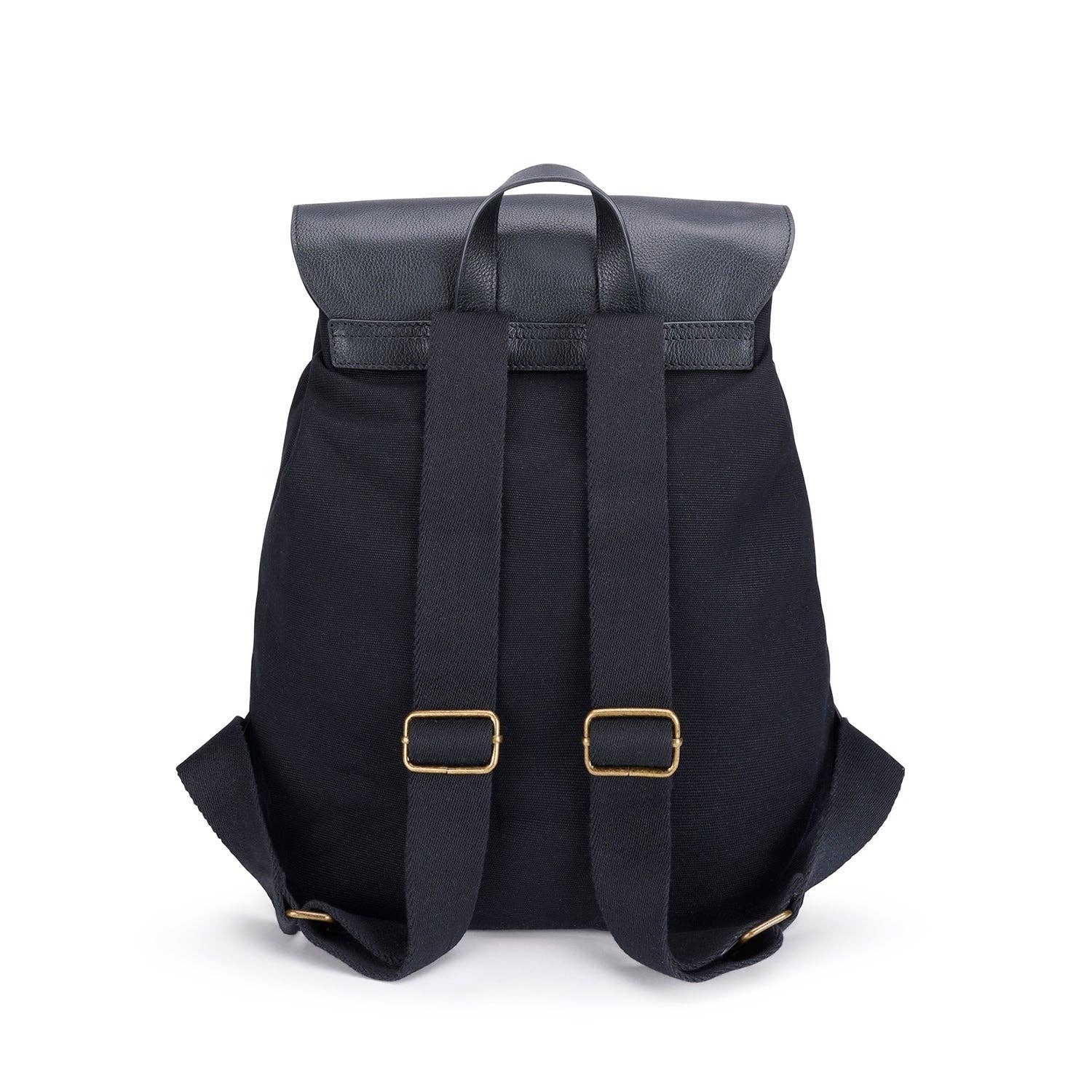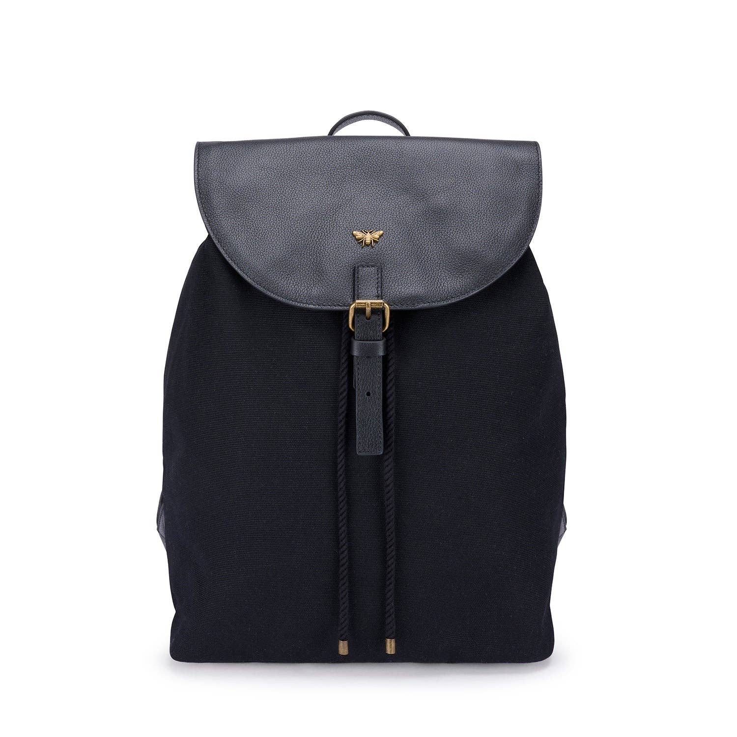 This understated and elegant black backpack is a stylish staple, pairing with any outfit. Made from cotton and leather, it's the perfect go-to for everyday occasions. There is a handy inner zipped pocket, which is perfect for small valuables, a drawstring tie and a secure buckle. Sophie's embossed signature bee rivet on the front finishes this classic backpack off perfectly.