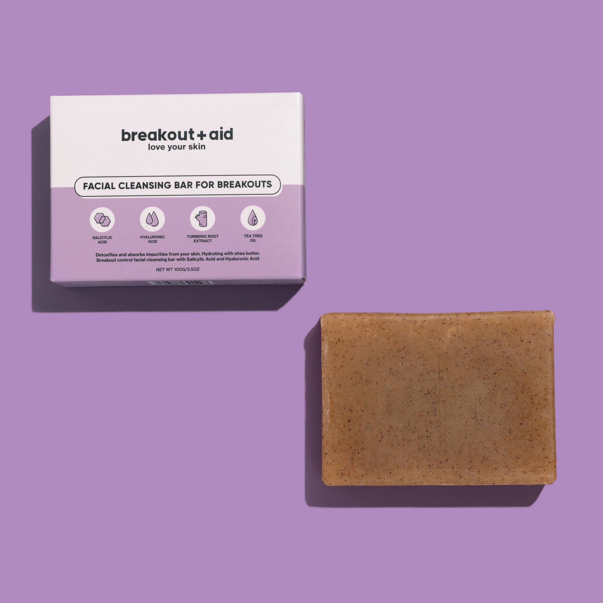 Breakout control facial cleansing bar with Salicylic Acid and Hyaluronic Acid that detoxifies and absorbs impurities from your skin while hydrating with shea butter.