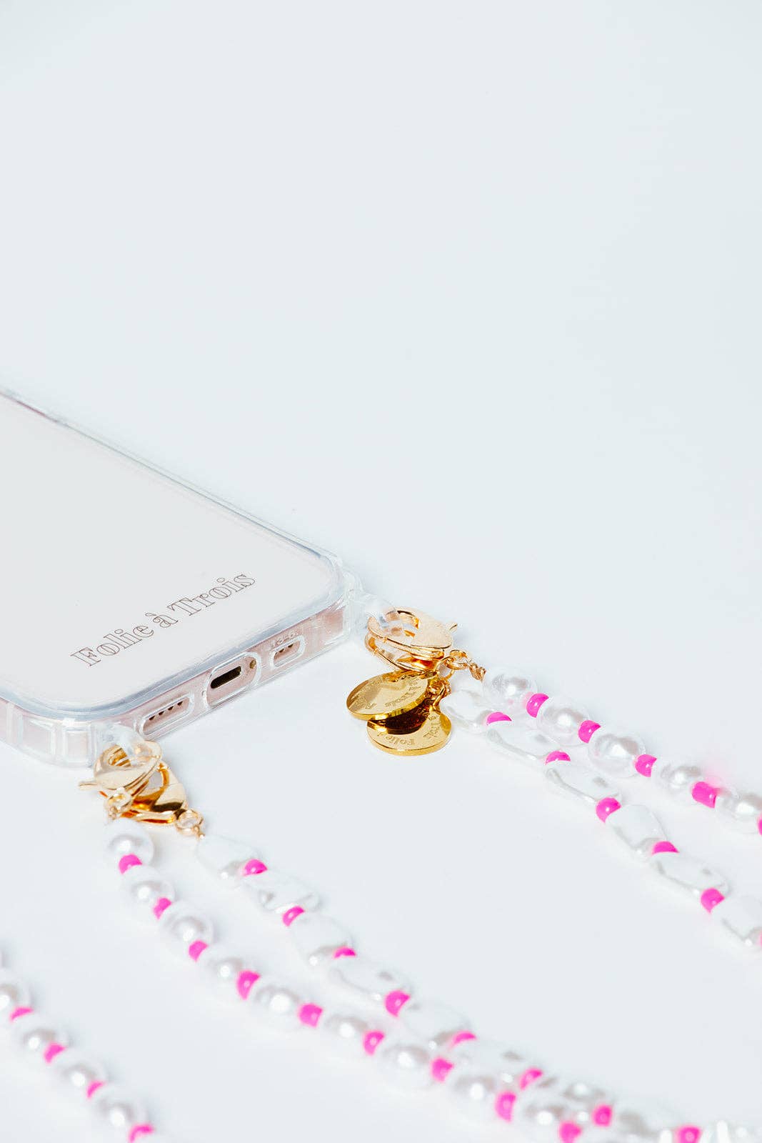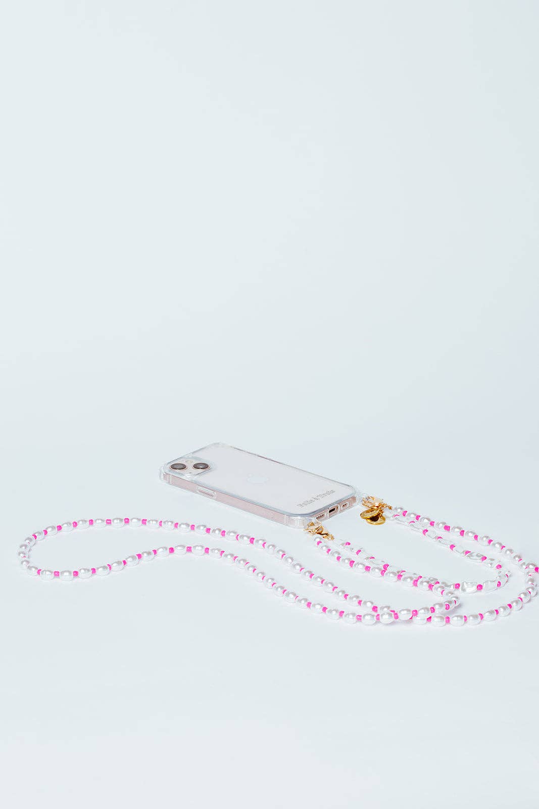 Jazz up your phone with our Posy Pearl Long PHONE STRAP! This unique strap features a playful pink bead and pearls for a touch of charm. Keep your phone close and stylish with this must-have accessory.